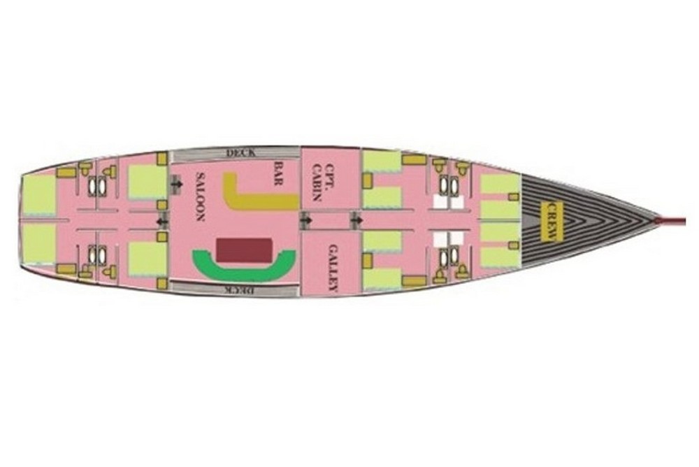 Croatia è il nuovo nome del caicco Hana, caicco di grande successo. Molto comodo e con tantissime attrezzature di bordo per una vacanza perfetta. Può accogliere fino a 12 ospiti in 4 cabine matrimoniali e 3 doppie con servizi privati. Naviga su rotte selezionate. Nell'ultimo refit sono stati aggiunti l’idromassaggio in coperta e la moto d’acqua. La presente scheda non ha finalità contrattuali.