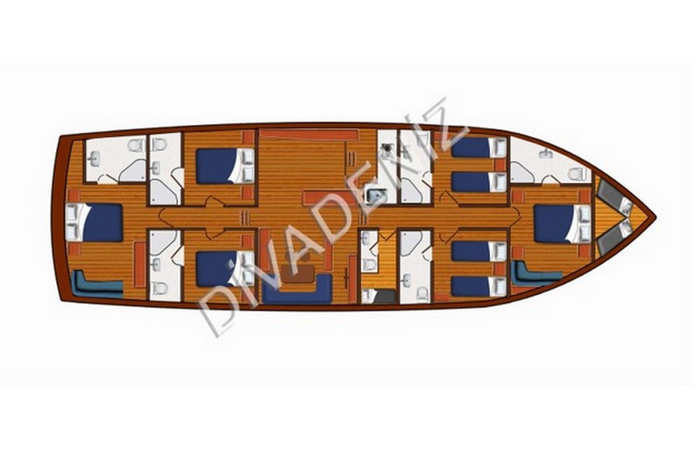 Diva Deniz è un caicco turco dal rapporto qualità/prezzo davvero attraente. Può accogliere fino a 12 ospiti in 6 cabine (2 master, 2 matrimoniali, 2 twin) con 5 persone di equipaggio. Il pozzetto è molto comodo e gli interni molto curati. La presente scheda non ha finalità contrattuali.