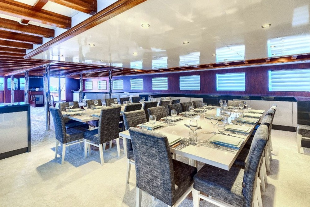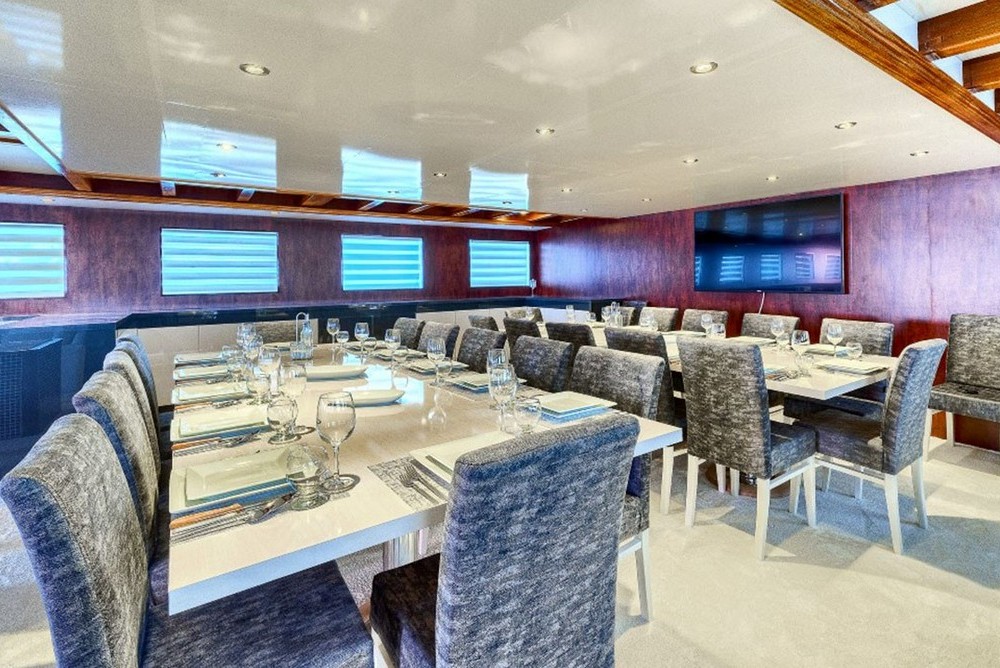 Aria Condizionata, Attrezzatura snorkeling e pesca, Canoa, Generatore, Sci nautico, TV con DVD in salone ed ogni cabina, tender con fuoribordo 100hp, Idromassaggio, Tapis roulant, Ringo e banana, Wakeboard, Connessione internet,