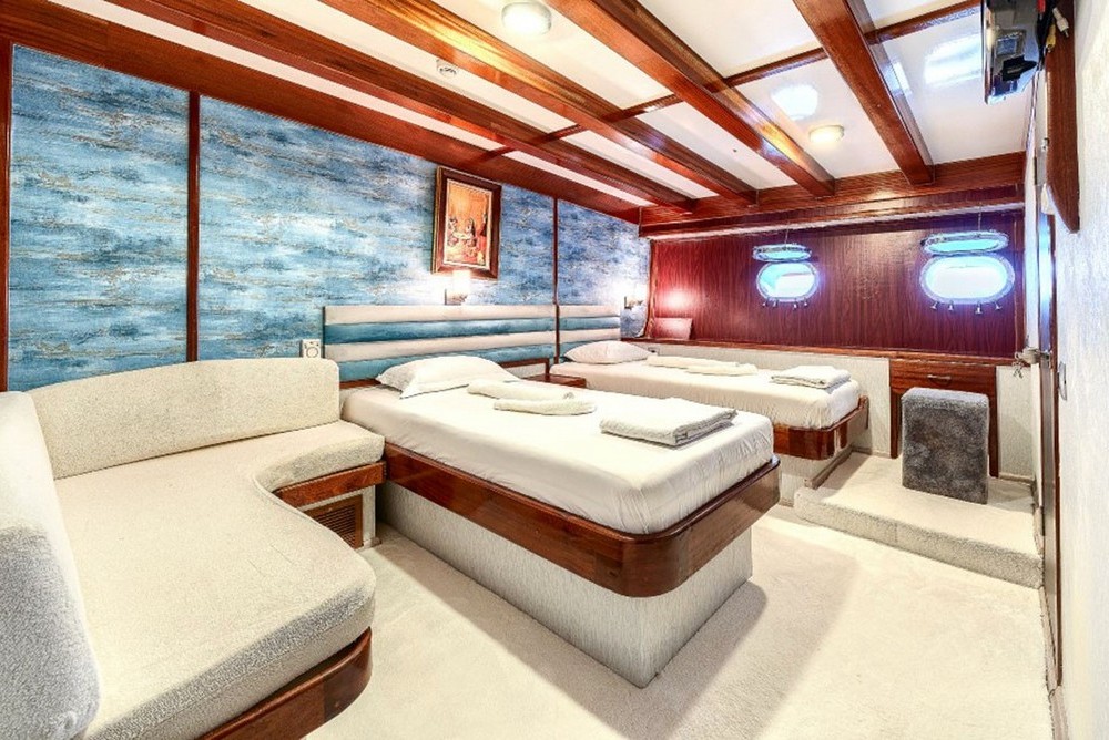 Elara 1 (ex Halis Temel) è una navetta che può accogliere fino a 24 ospiti in acque turche e greche. Le 12 cabine sono tutte al ponte inferiore, per lasciare libero lo spazio diurno. Gli spazi a bordo sono generosissimi, con un fly prendisole e bar molto comodo e apprezzato dagli ospiti. Le attrezzature a bordo sono tantissime, fino all'idromassaggio in coperta, il tapis-roulant, lo sci nautico, tv in ogni cabina, interfono. La presente scheda non ha finalità contrattuali.