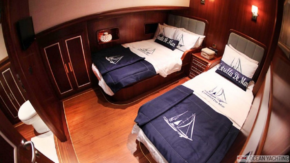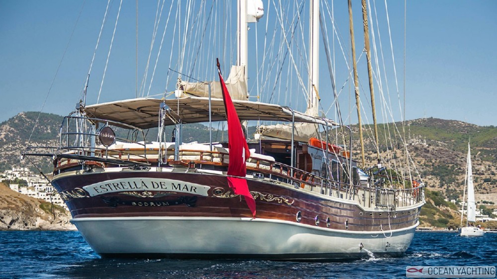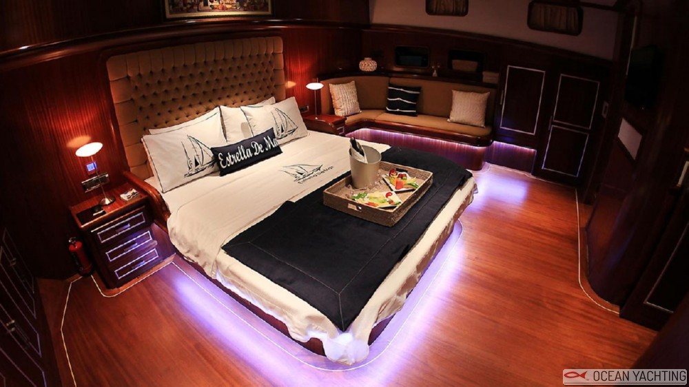 Caicco molto elegante, Estrella De Mar vi potrà accogliere con un servizio di alto livello, offerto di una barca di grande confort e charme. Può accogliere fino a 10 ospiti in 5 cabine con 5 persone di equipaggio. La presente scheda non ha finalità contrattuali.