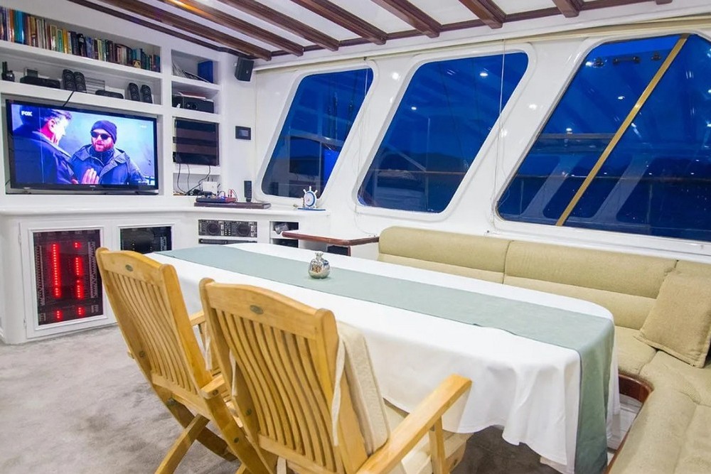 Aria Condizionata, Attrezzatura snorkeling e pesca, 2 Canoa, 2 Generatore, SAT TV con DVD in salone e cabine, Sci nautico, Tender con fuoribordo 60hp, Dissalatore, Windsurf, WiFi, Wakeboard, JBL music system,