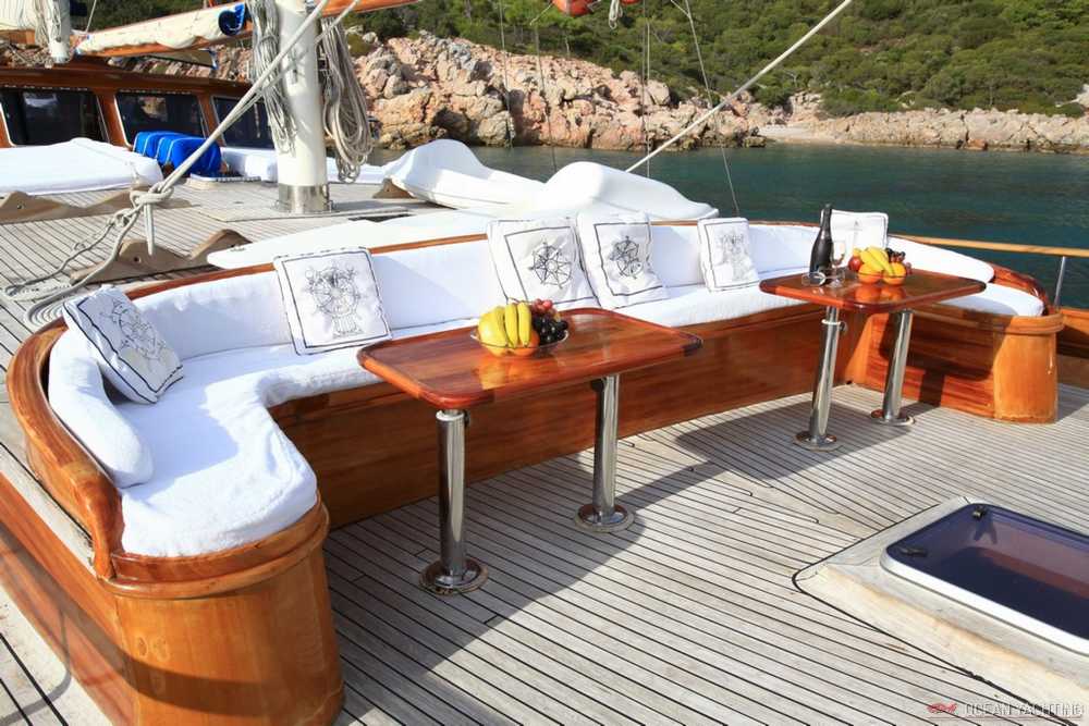 Aria condizionata in ogni cabina e nel salone, TV a colori e DVD, Hi-fi, Generatore 220V, Tender con fuoribordo, Attrezzatura da snorkeling, Attrezzatura da pesca, Windsurf, 2 canoe, Ice-maker, Tender di servizio in fibra di vetro con fuoribordo 15hp, Tender per sport acquatici con fuoribordo 60hp, Wifi,