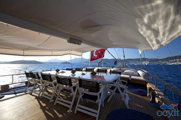 Osman Kurt è un caicco di Bodrum completamente ristrutturato nel 2013. Può accogliere fino a 16 ospiti in 4 cabine matrimoniali e 4 doppie, tutte con servizi privati, anche in acque greche. 5 persone d’equipaggio. I legni chiari ne risaltano la luminosità. La presente scheda non ha finalità contrattuali.