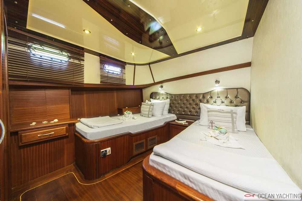 Varato nel 2012, Remzi Yilmaz ha un buon successo nel mondo del charter, per merito del buon servizio offerto, ad un prezzo decisamente accettabile. Può accogliere fino a 12 ospiti in 6 cabine (1 master, 4 matrimoniali e 1 twin) con servizi privati. 4 persone di equipaggio. La presente scheda non ha finalità contrattuali.