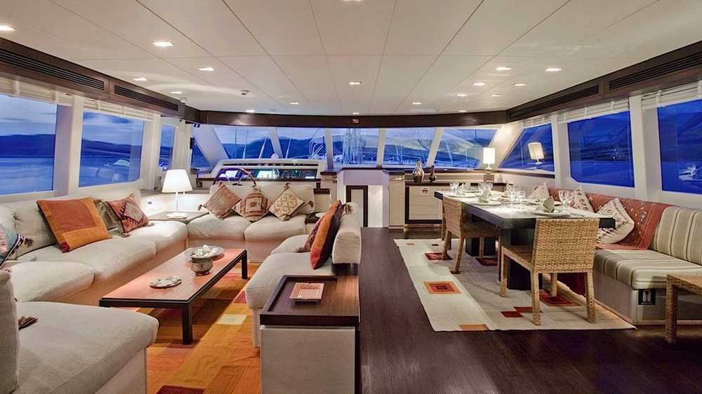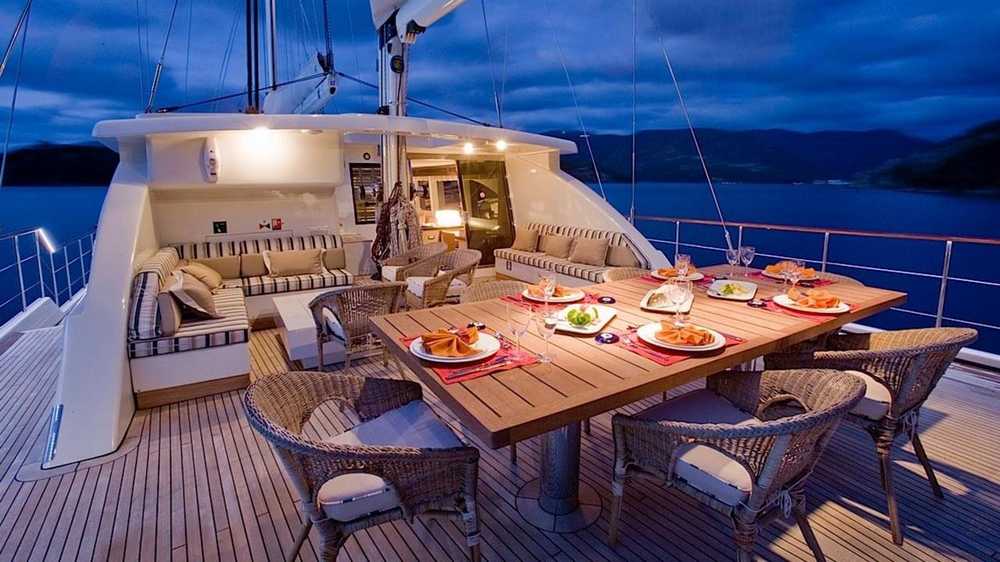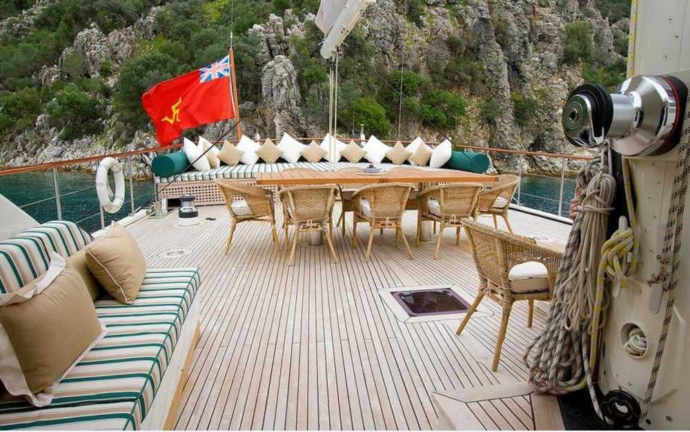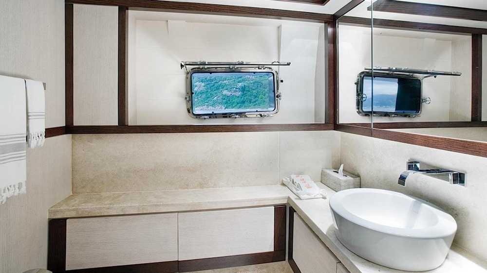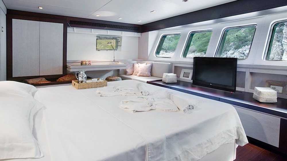 Sailing Nour è, a nostro avviso, uno dei caicchi più belli di Turchia, e quindi del mondo. La caratteristica della barca, oltre ai grandi spazi, è rappresentata da un secondo soggiorno, separato dal soggiorno principale, e dalla cabina master, con il letto matrimoniale girato verso poppa per potere godere dell’ampia finestratura. Può accogliere fino a 9 ospiti in 1 master, 1 matrimoniale e 2 twin (1 trasformabile in doppia e una con possibilità di letto a scomparsa). I bagni , in marmo, sono provvisti di bidet. La presente scheda non ha finalità contrattuali.