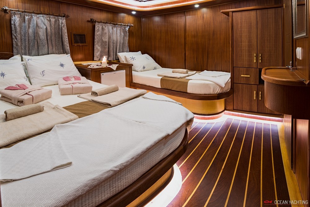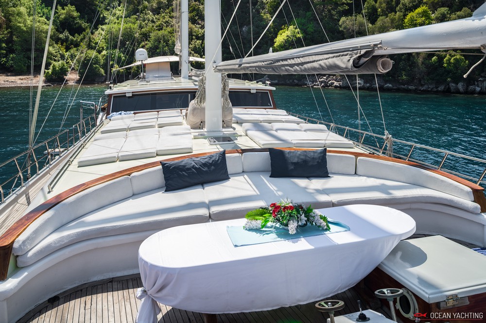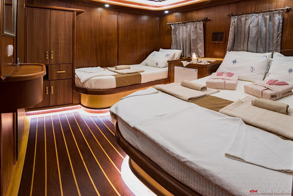 Sailing Nou Taylan è un ottimo caicco che naviga in Turchia. Può accogliere fino a 18 ospiti in 6 cabine matrimoniali e 2 triple. 5 persone di equipaggio. La presente scheda non ha finalità contrattuali.