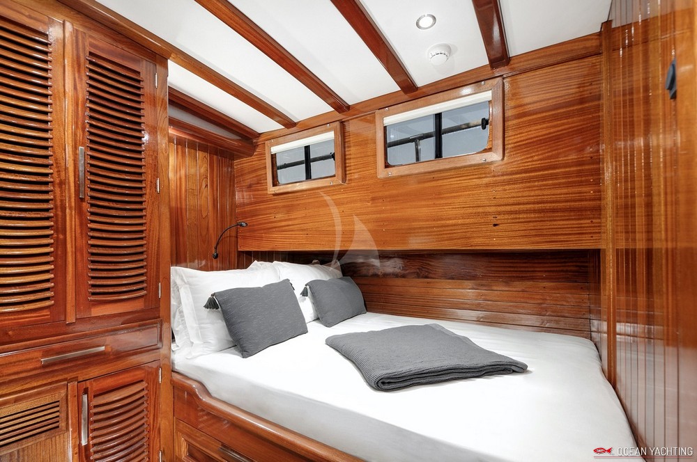 Serenad A è un caicco tradizionale ed elegante manutenuto in maniera impeccabile, per chi ama il calore del legno classico. Può ospitare fino a 8 ospiti in 4 cabine di grandezza simile (3 matrimoniali e 1 twin) con 4 persone di equipaggio. Prezzi da €14.000 a €17.500 a settimana. La presente scheda non ha finalità contrattuali.
