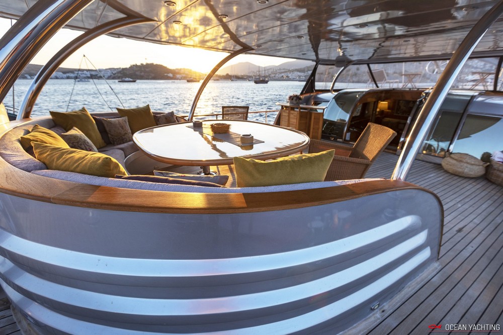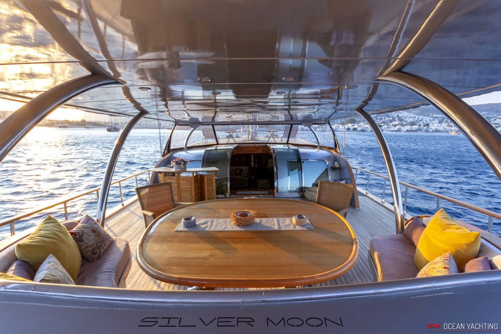 Silver Moon è un caicco di alto livello che naviga in Turchia. Può accogliere fino a 9 ospiti in 1 master, 1 Vip, 1 tripla e una matrimoniale. E' presente anche una piccola singola per persona di servizio quale baby sitter con bagno privato. 5 persone di equipaggio. La particolarità di questa barca sono i legni interni in ciliegio, dal colore caldo. €35.000/42.000 a settimana. La presente scheda non ha finalità contrattuali.