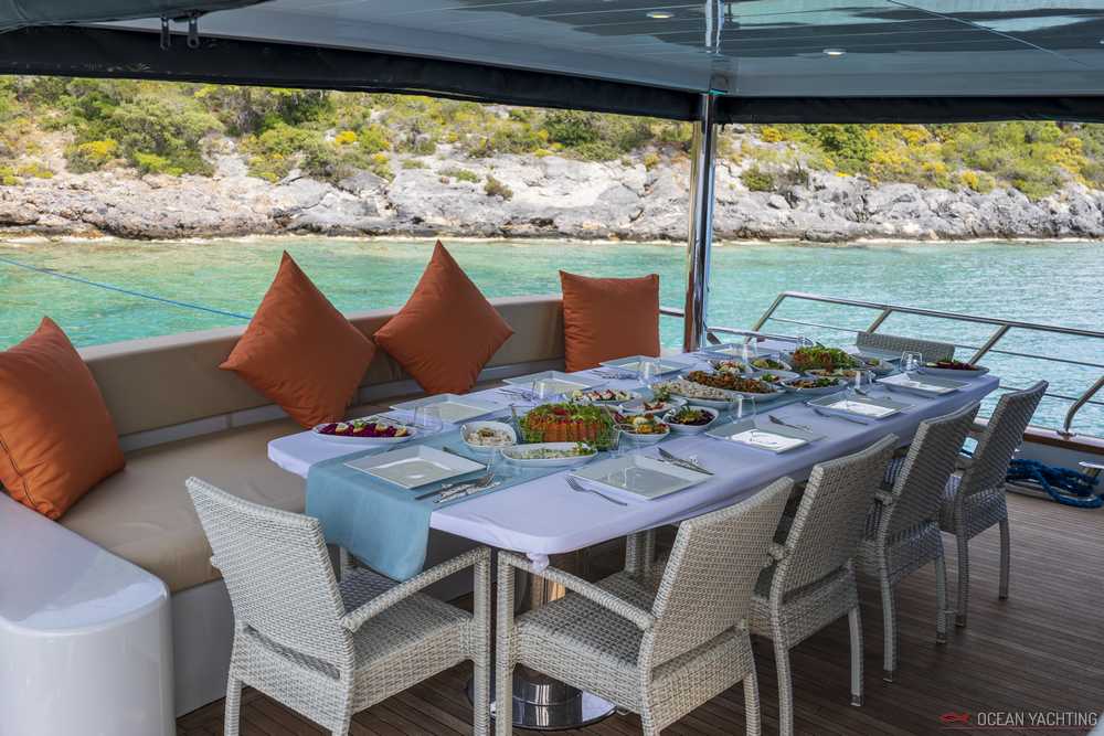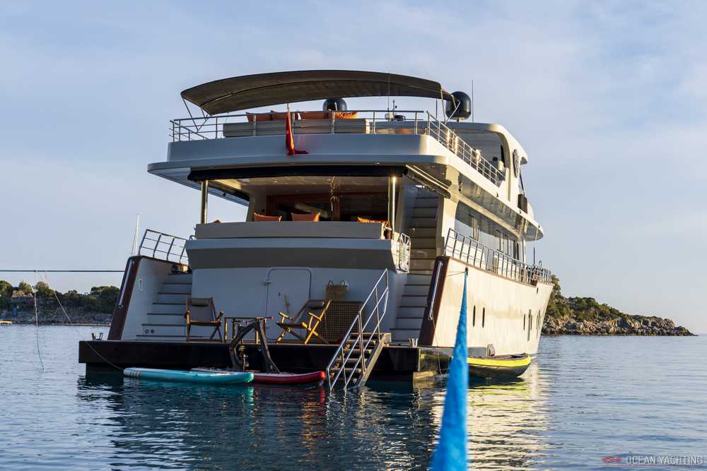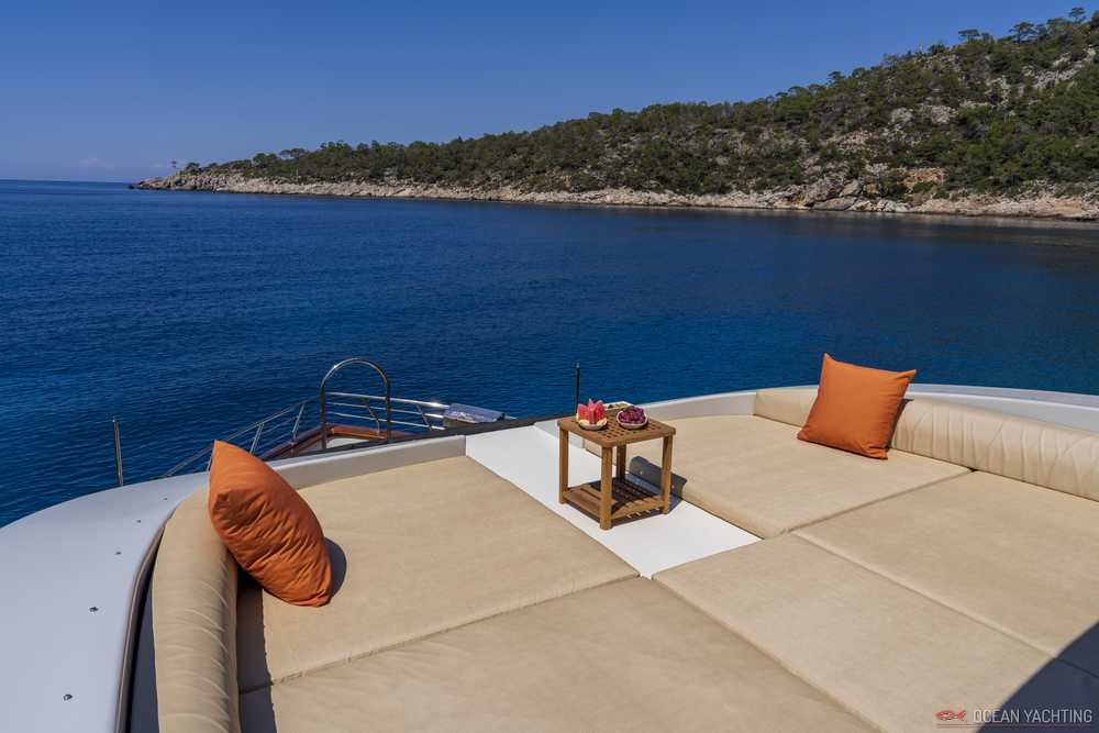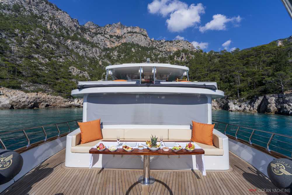 Simay S è il gemello di altri Simay, trawler di grande successo. La visita alla barca è stata una piacevole sorpresa. Cabine comodissime, interni di pregio, grande spazio nel fly, dotato di bar e spazio solarium a prua. Può accogliere fino a 10 ospiti in 2 master, 1 matrimoniale e 2 twin, con 5 persone di equipaggio. La presente scheda non ha finalità contrattuali.
