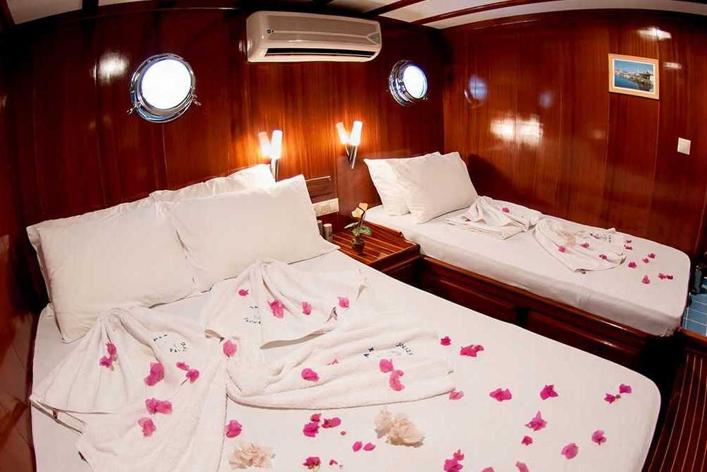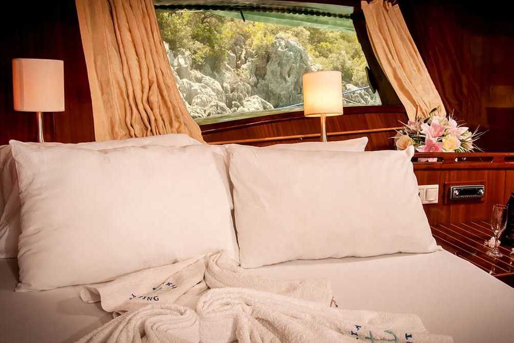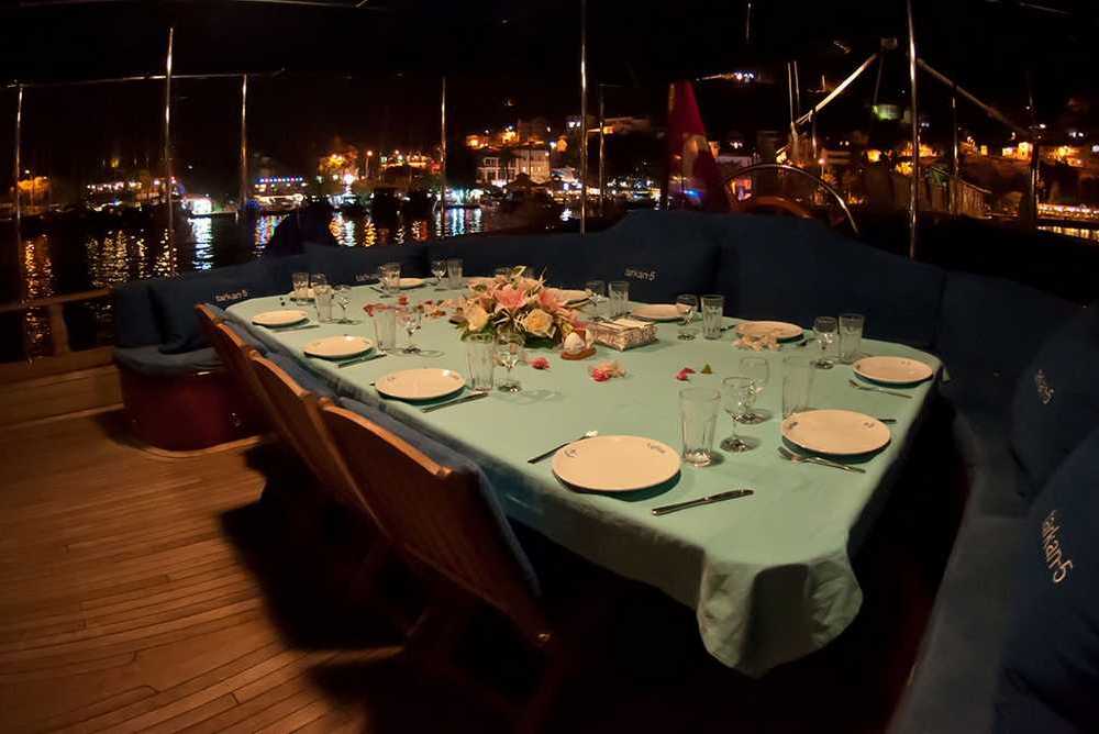 Tarkan 5 è un caicco dai grandi spazi. Gemello del Kayhan 12 può ospitare fino a 18 ospiti in 6 cabine matrimoniale 2 triple. L’equipaggio ha alloggi separati. La presente scheda non ha finalità contrattuali.