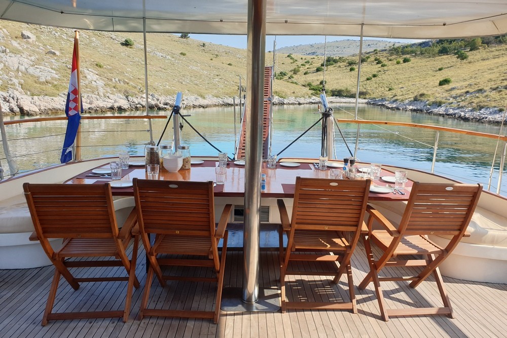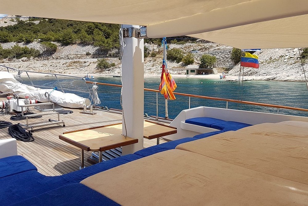 Vito è un caicco completamente restaurato nel 2017 che naviga in Croazia. Ha forse il miglior rapporto qualità prezzo di tutta la Croazia. L’ampio fly bridge offre grande vivibilità degli spazi. Può accogliere fino a 14 ospiti in 7 cabine. 4 persone di equipaggio. Vasto assortimento di sport acquatici tra cui sci nautico e underwater scooter Yamaha RDS280. Interessante la possibilità di cinema sul flybridge. La presente scheda non ha finalità contrattuali.