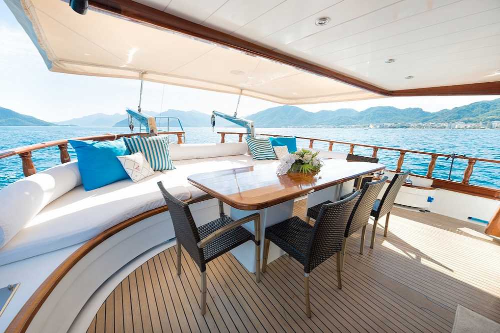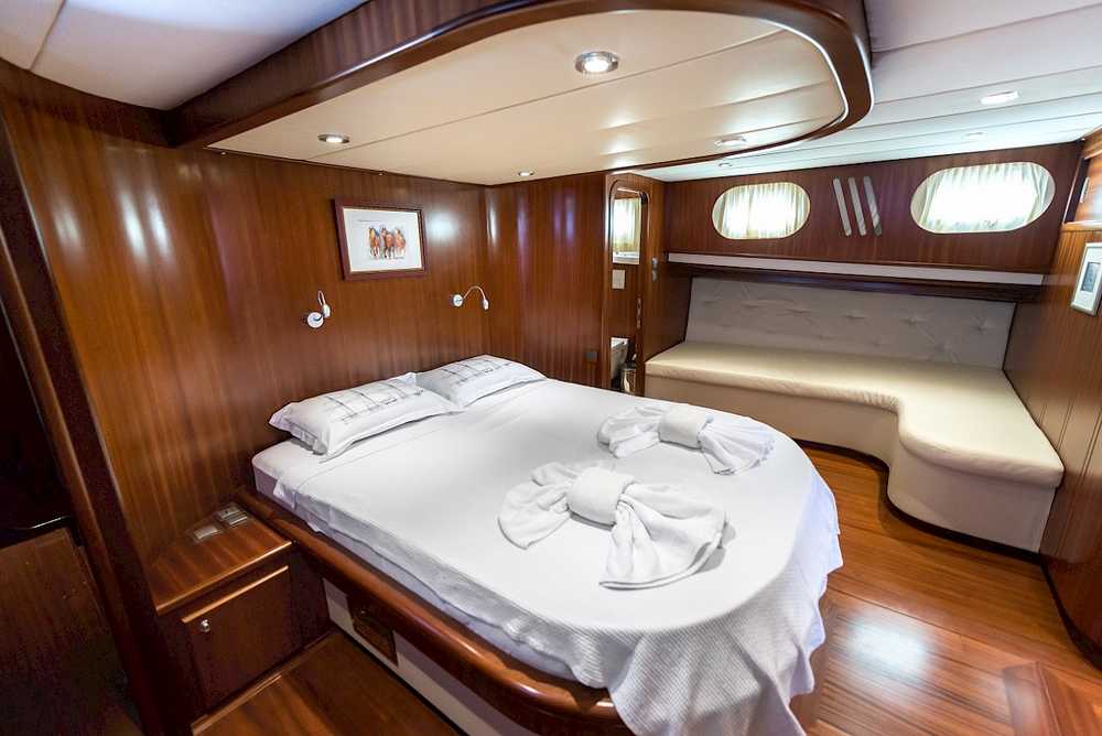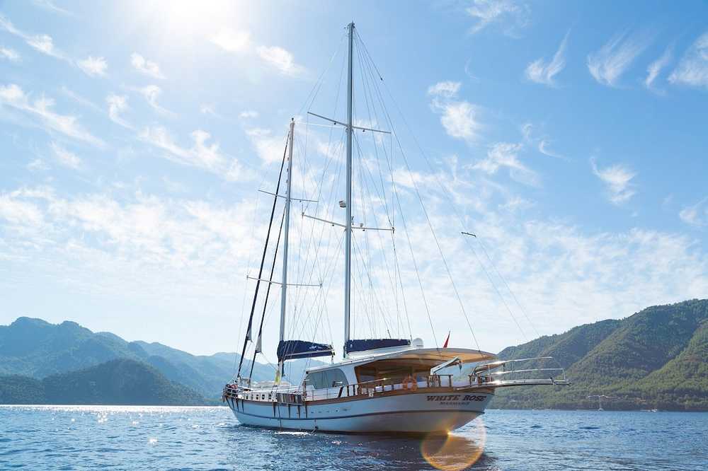 NUovo sul mercato, White Rose è il classico caicco a poppa tonda che offre quindi uno spazio senza gradini tra pozzetto e soggiorno. Può accogliere fino a 8 ospiti in 1 cabina master e 3 doppie, con servizi privati. 3 persone di equipaggio. La presente scheda non ha finalità contrattuali.