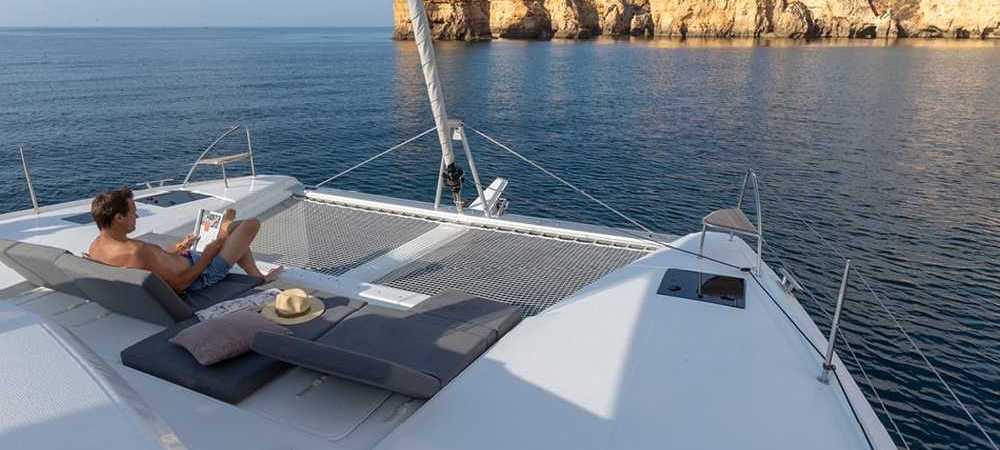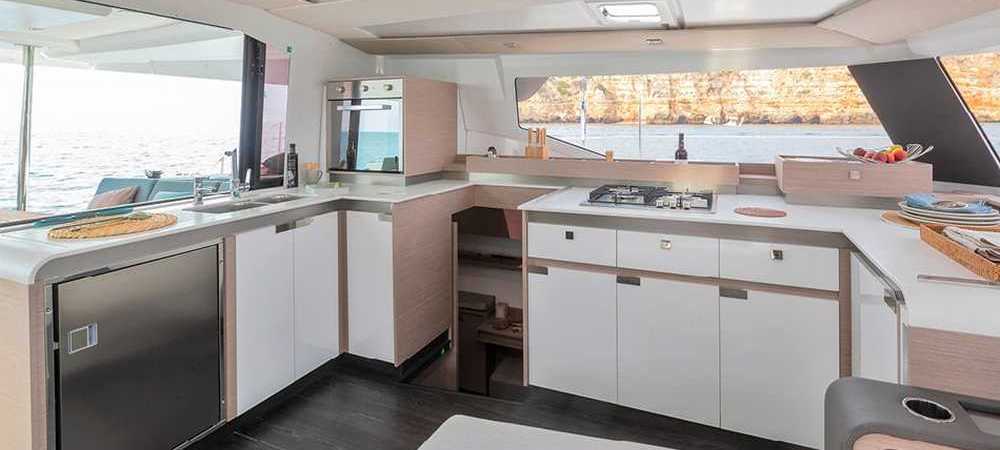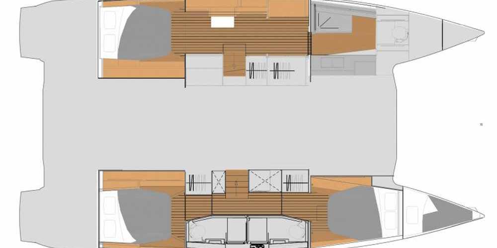 Il nuovo Elba 45 è un catamarano dalle linee moderne e pulite. L'ampia apertura principale fornisce uno spazio continuo tra dinette e pozzetto molto comodo ma la caratteristica principale è l'ampio fly, considerando la dimensione della barca. Esiste in versione armatoriale con 3 cabine e 3 wc o in versione 4 cabine 4 wc. La presente scheda non ha finalità contrattuali.