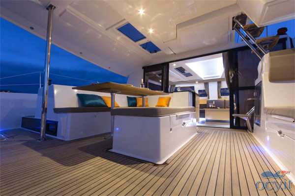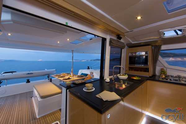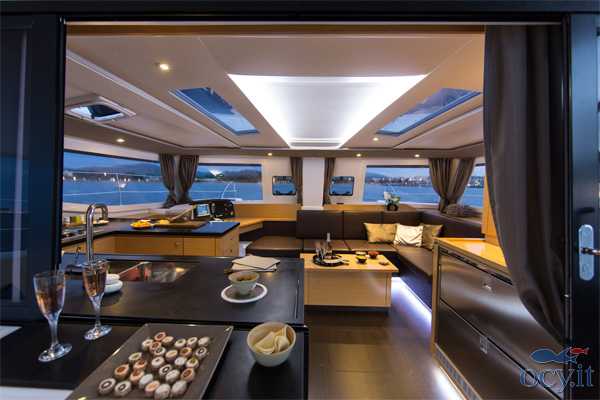 L'Helia 44 è un modernissimo catamarano che è stato progettato per i più alti standard di ecocompatibilità e risparmio energetico. Le ampie pannellature solari, i sistema di gestione dei consumi e l'illuminazione a led permettono praticamente di non dover masi ricaricare le batterie. Gli spazi interni ed esterni (compreso il fly) sono molto comodi e spaziosi, per una crociera in completo relax. Può essere in versione 3 o 4 cabine + 2. La presente scheda rappresenta il modello offerto e non ha finalità contrattuali.
