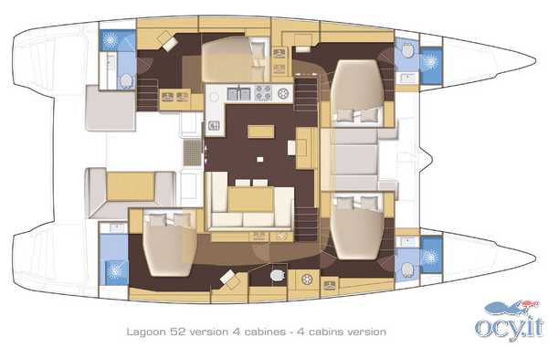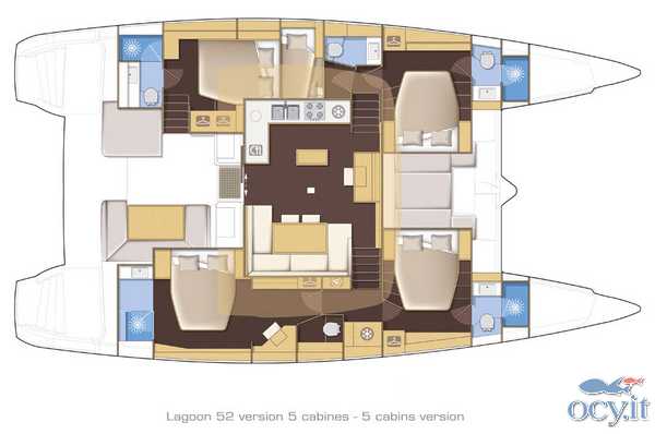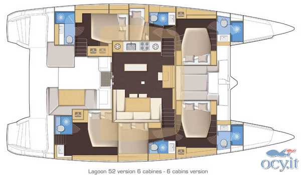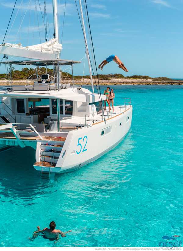 Il lagoon 52 sostituisce il fortunatissimo Lagoon 500. Esternamente è caratterizzato da linee più pulite, un pozzetto di poppa molto spazioso, un pozzetto di prua, un flybridge e zona timoneria con spazio prendisole. Gli interni, progettati dallo studio Nauta Design, prevedono allestimenti da 3 a 6 cabine + cabinette di prua per l’equipaggio, tutte con bagno privato. Le due cabine di poppa possono avere accesso dal pozzetto. La presente scheda non ha finalità contrattuali e rappresenta il modello in versione standard.