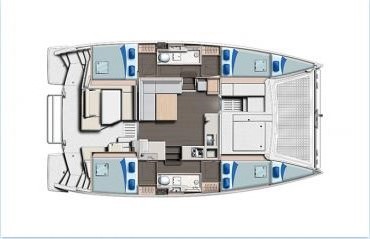 Catamarano di nuova generazione, dalle linee moderne e legni chiari, dispone di 4 cabine matrimoniali e 2 cabinette di prua con accesso dalla cabina, adatte per bambini. La caratteristica più saliente è il pozzettino di prua con accesso dal salone. 2 wc. La presente scheda non ha finalità contrattuali e rappresenta la tipologia di imbarcazione proposta, non la barca specifica del preventivo.
