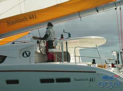 Evoluzione del Nautitech 44, presenta sul tetto dell'hard top i pannelli solari. Si differenzia in 441 (con singola timoneria rialzata e piccolo bimni a protezione del timoniere) e 442 con i classici 2 imoni a poppa degli scafi. Spazi generosi sia in cabina che pozzetto/dinette. La presente scheda non ha finalità contrattuali e rappresenta la tipologia di imbarcazione proposta, non la barca specifica del preventivo.