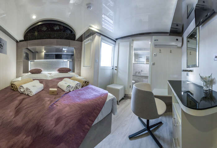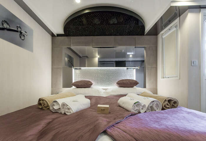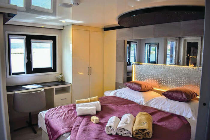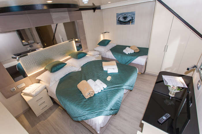 Ave Maria è un minicruiser costruito nel 2018, che può accogliere 38 ospiti in cabine spaziose dotate di aria condizionata e servizi privati. Naviga in Croazia e ha un ampio solarium e una vasca idromassaggio. Sul ponte superiore si trovano 11 cabine VIP dotate di balcone. La presente scheda non ha finalità contrattuali.