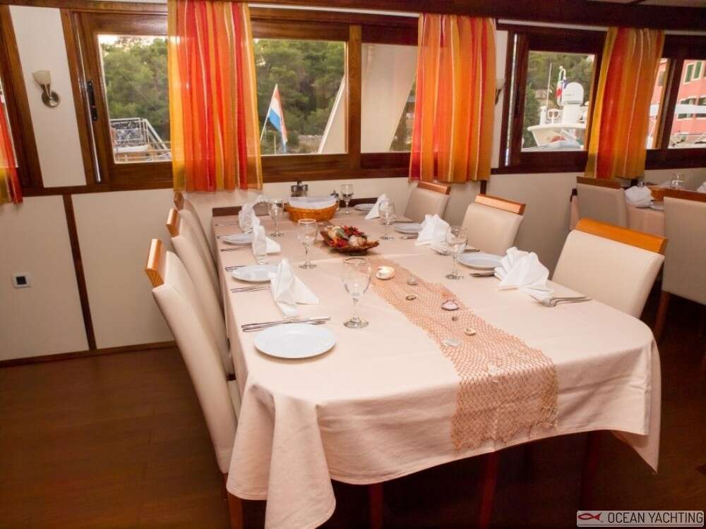 Minicruiser che naviga in Croazia, Dalmatia può accogliere fino a 38 ospiti in 19 cabine con servizi privati. La presente scheda non ha finalità contrattuali.
