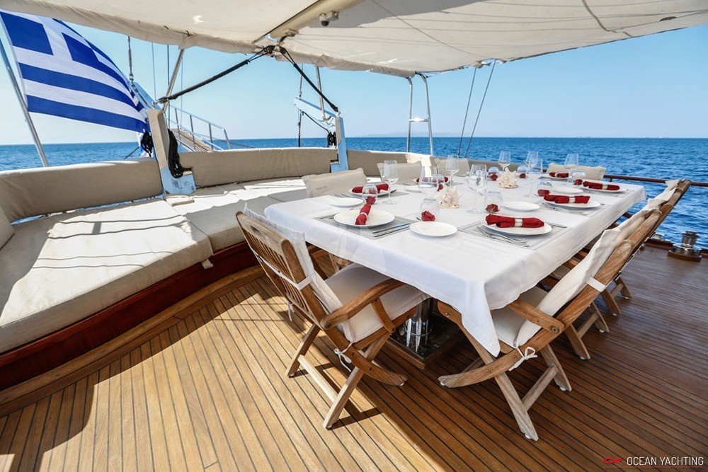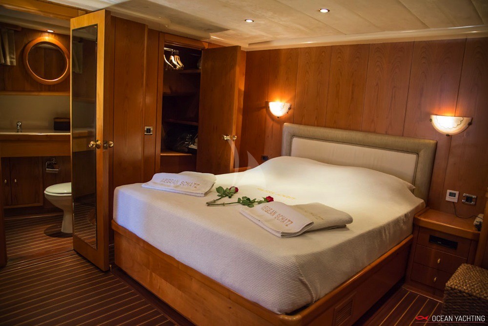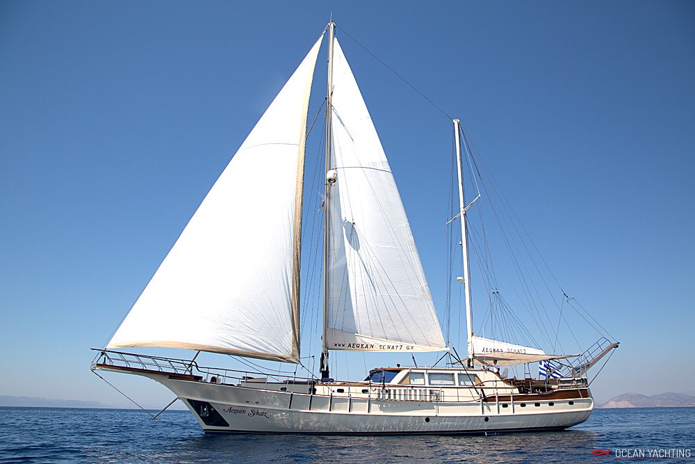 Aegean schatz è un caicco greco che ha base Atene. Può accogliere fino a 10 ospiti in 5 cabine. 5 persone di equipaggio. La presente scheda non ha finalità contrattuali.