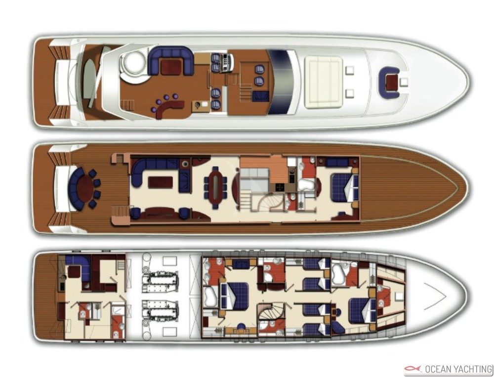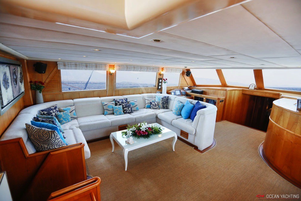 Aria condizionata, Tender 4,30 con fuoribordo 60hp, Attrezzatura da pesca, Hi-fi, Generatore 220V, Windsurf, TV plasma-Tv satellitare- DVD-DCD.CD in ogni cabina, Attrezzatura snorkeling, Telefono Satellitare, Attrezzatura diving su richiesta, Sci nautico, Internet veloce, Stampante,