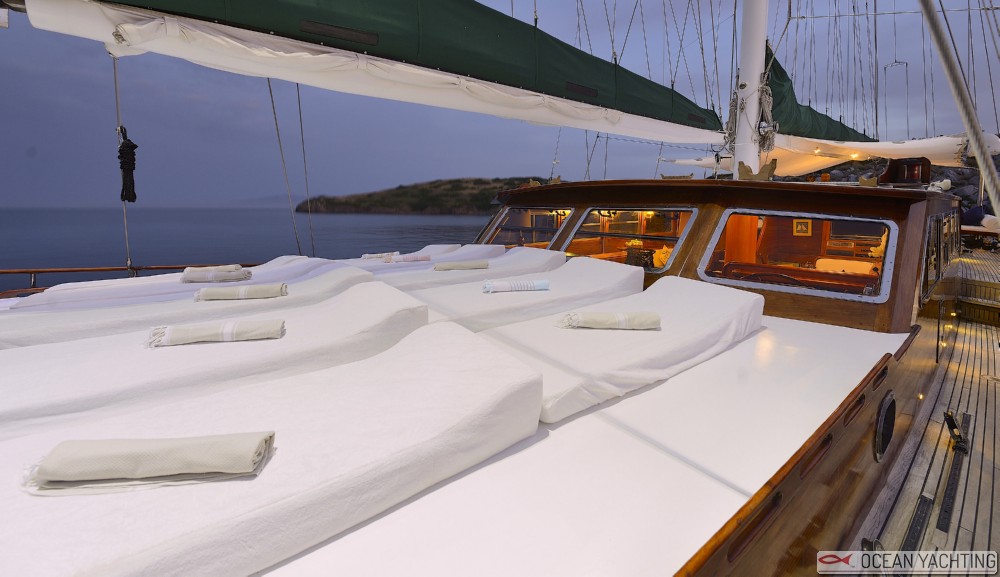 Ecce Navigo è un caicco di lusso che naviga in Grecia Dodecanneso. Può accogliere fino a 10 ospiti in 2 cabine doppie, 2 twin e una master, con 5-6 persone di equipaggio. Il servizio a bordo è molto accurato. La presente scheda non ha finalità contrattuali.