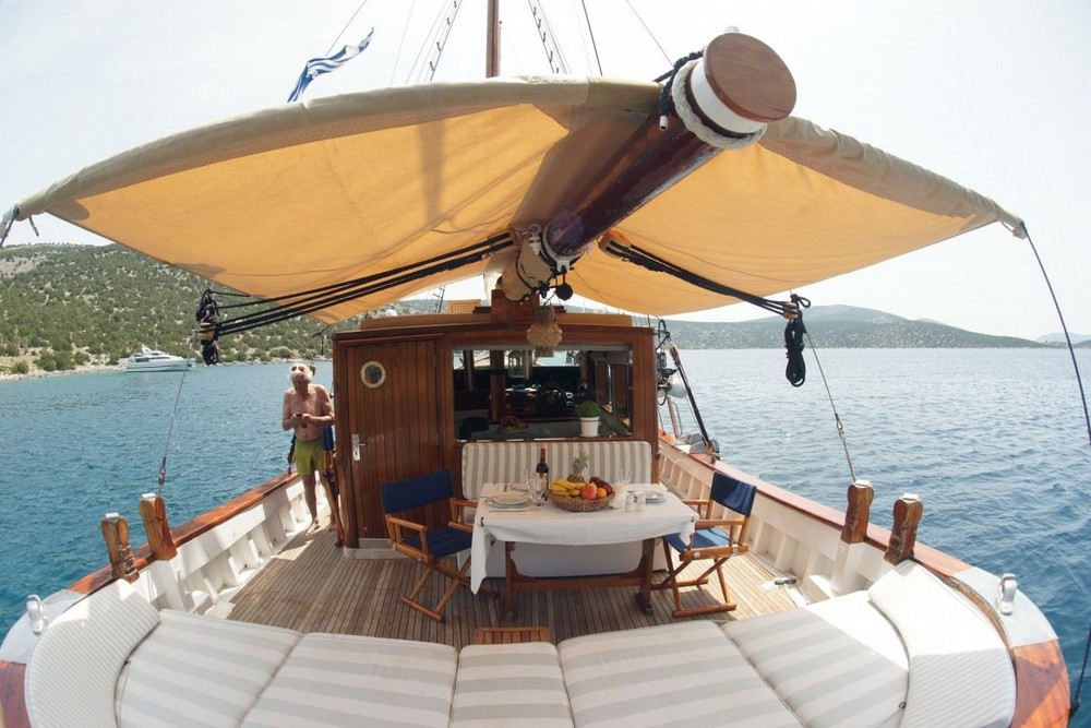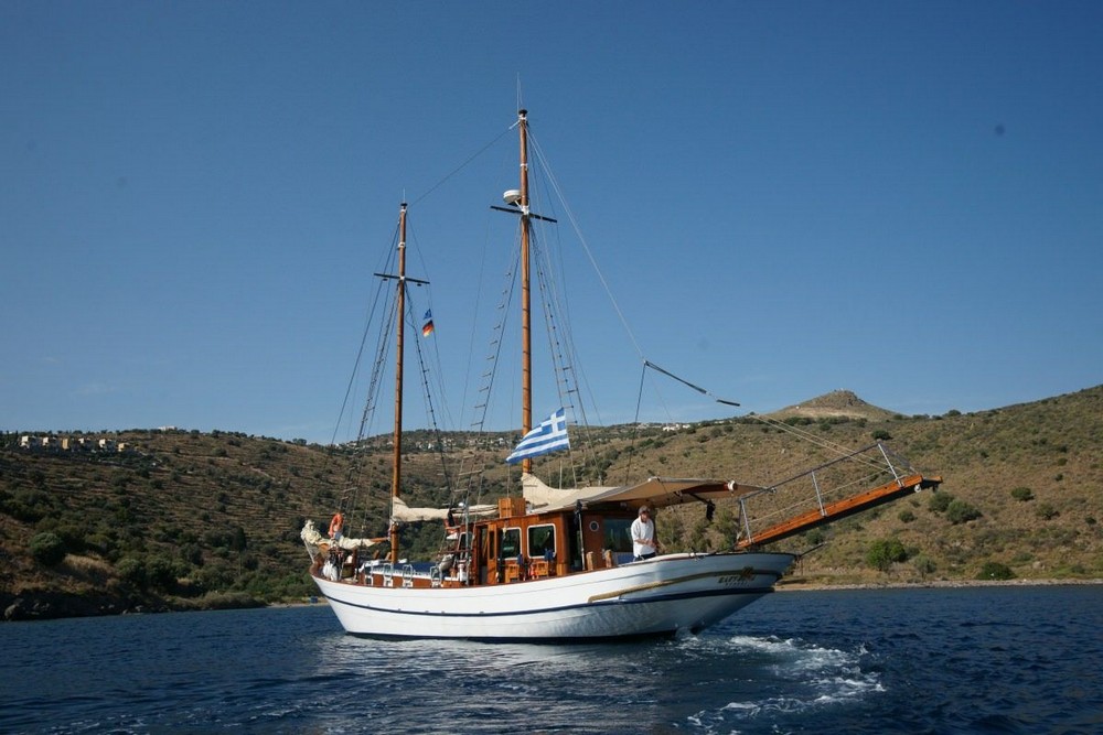 Eleftheria è uncaicco che naviga in acque greche. Offre 3 cabine con 2 wc, 2 persone d'equipaggio. 6 ospiti. Aria condizionata. Salone con sala da pranzo e banco bar. In coperta cuscinerie e zona pranzo esterna. La barca offre il solo servizio di mezza pensione. La presente scheda non ha finalità contrattuali.