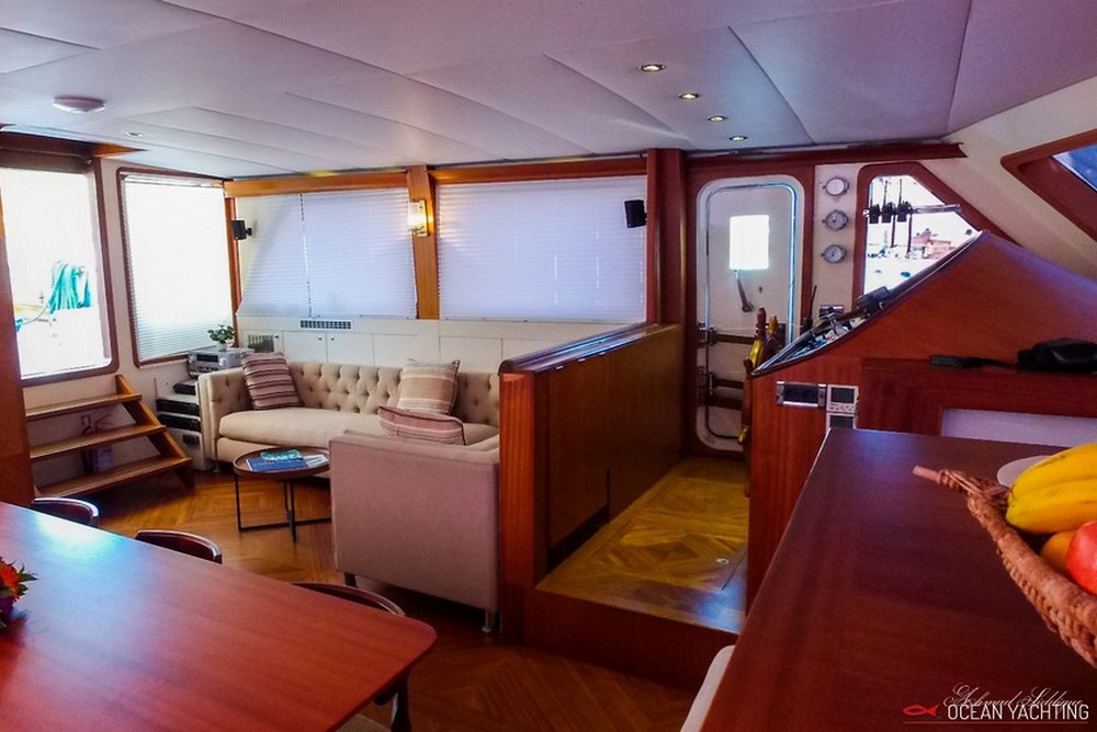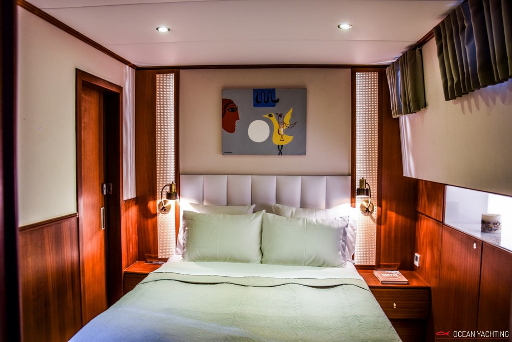 Dalle linee eleganti e accattivanti, Papa Joe può accogliere fino a 10 ospiti in 1 cabina master e 4 matrimoniali con servizi privati. Arredamento di design. Equipaggio espertissimo a gestire la clientela più esigente. Una della cabine doppie può essere combinata con la grande cabina armatoriale (50mq) per renderla una suite famigliare. La TV a grande schermo può essere ruotata per essere vista dalla coperta. Ha la licenza di charter per la Croazia e l'Italia. La presente scheda non ha finalità contrattuali.