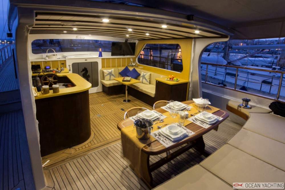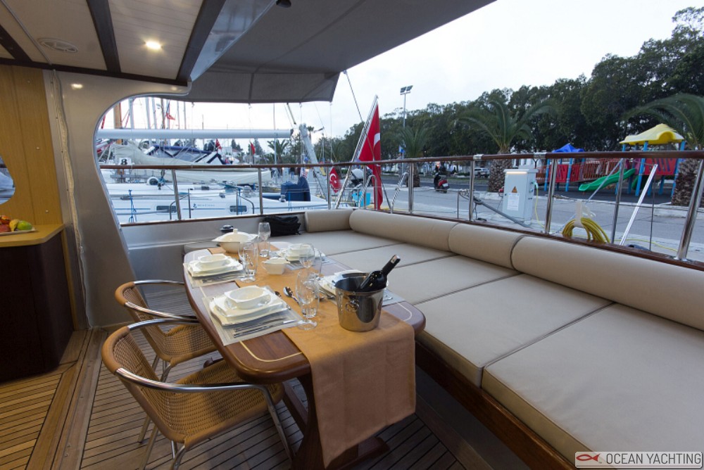 Azra Can è un caicco che naviga solo in Turchia, l'armatore non gradisce andare in Dodecanneso. Può accogliere fino a 4 ospiti in 2 cabine, una master molto comoda e una cabina con letti twin ma convertibili in matrimoniale, con servizi privati. Ha zone esterne molto comode ed ampie. 2 persone di equipaggio. La presente scheda non ha finalità contrattuali.