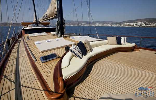 Area di navigazione: Turchia e Grecia Egeo. Fatevi coccolare con un servizio di altissimo livello. Varato nel 2011, Gora è uno dei caicchi più belli e lussuosi di tutto il Mar Egeo. L’equipaggio (7) ha alloggi separati. La barca è elegantissima, anche grazie ai pavimenti in quercia americana che ne conferiscono una luminosità notevole. Le cabine e i bagni sono molto comode e spaziose. 2 cabine hanno la possibilità del terzo letto, per garantire la massima capienze di 12 ospiti. Gli spazi in coperta sono sorprendenti. Prezzo di listino a settimana da Euro 50000. La presente scheda non ha finalità contrattuale.
