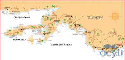 Bodrum, Orhaniye, Marmaris, Gocek, Fethiye. Rodi o Kos