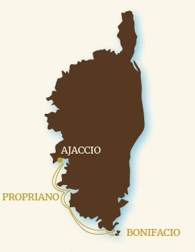 Ajaccio - Valinco - Senetosa - Bonifacio - Lavezzi - Isola Piana - Roccapina - Valinco - Propriano - Ajaccio